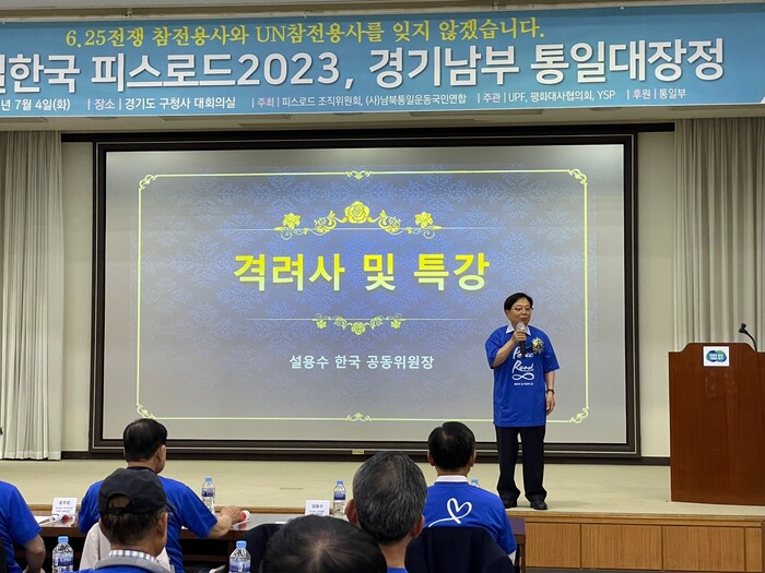 피스로드 2023 경기남부 조직위원회가 주최하고 통일부가 후원하는 ‘신통일한국 피스로드 2023 경기남부 통일대장정’이 지난 4일 경기도 수원에 위치한 경기도 구청사 대회의실과 팔달산 충혼탑에서 설용수 피스로드 2023 조직위원회 한국공동위원장, 김용서 전 수원시장, 양순석·최정환 피스로드 경기남부 공동위원장 등 경기도민, 수원시민 등 150여명이 참석한 가운데 개최됐다.