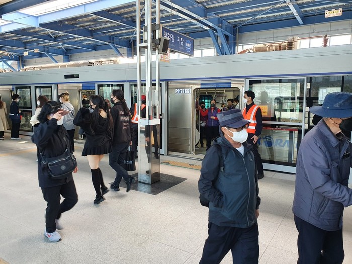 [로컬세계 부산=맹화찬 기자]한국철도 부산경남본부는 지난 3월 31일 ‘롯데월드 어드벤처 부산’ 개장 이후 늘어난 이용객의 안전 확보를 위해 오시리아역에 추가 인력을 투입해 안내를 강화하고 있다고 6일 밝혔다.