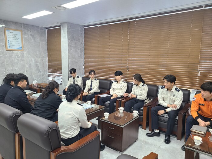 [로컬세계 부산=맹화찬 기자]부산 부산진소방서는 24일 서장실에서 관서장과 MZ세대 직원 간 ‘리버스 멘토링’을 개최했다.