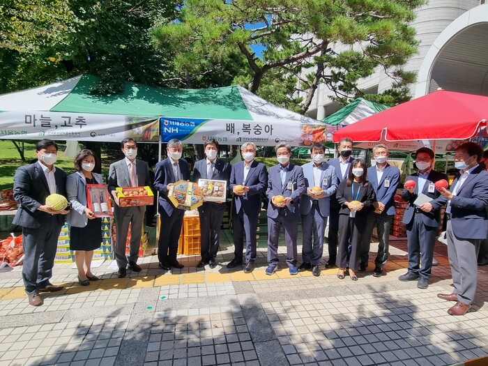 농협 서울지역본부(본부장 황준구)는 추석 명절을 앞둔 2일 서울고등법원 동관 앞마당에서 고등법원(법원장 김광태)과 함께 ‘추석 맞이 도농상생 직거래 큰장터’를 개장했다.