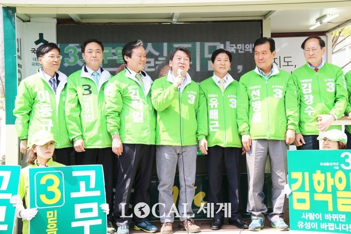 안 대표의 지원유세에는 국민의당 비례대표 1번 후보인 신용현 전 한국표준과학연구원장을 비롯해 2번 후보 오세정 서울대 물리천문학과 교수, 9번 후보 김삼화 전 사단법인 한국여성변호사회 회장도 참석해 자당 후보들의 지지를 당부했다.
