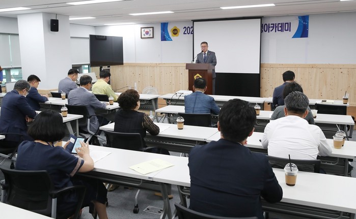 의정아카데미는 의원 의정역량 제고를 모색하기 위한 정례적인 전문가 특강 프로그램으로, 이날 행사에 참석한 의원과 의회사무처 직원들은 복주환 생각정리연구소 대표로부터 의정활동에 필요한 생각정리 스피치 기법 등을 청취했다.