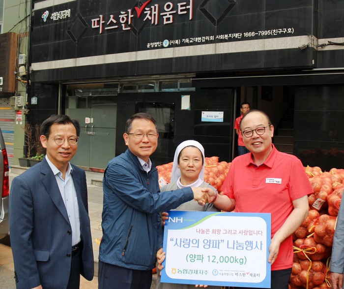 ▲농협경제지주는 26일 서울 용산구에 위치한 따스한 채움터를 방문해 양파 12톤을 전달했다. |