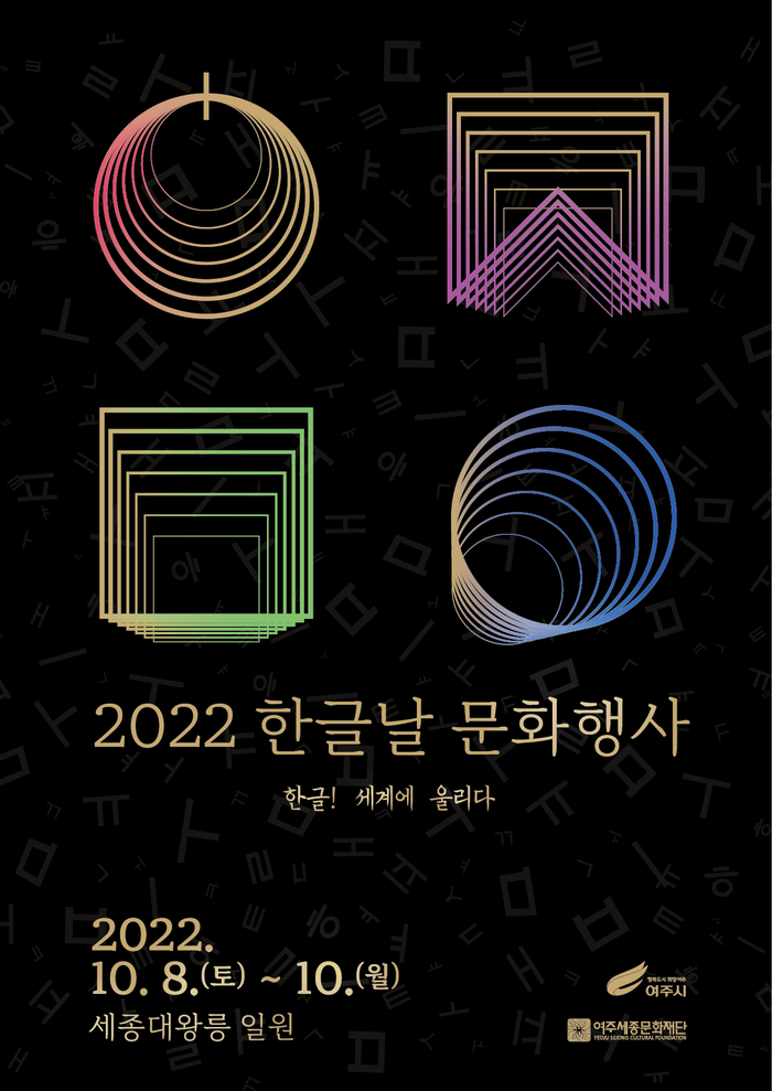 올해 한글날 문화행사는‘한글! 세계에 울리다’를 주제로 오는 8일부터 10일까지 3일간 세종대왕릉 일원에서 개최된다.