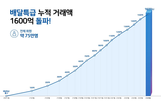 경기도주식회사는 지난 6월 1일 수요일 기준 배달특급의 총 누적 거래액이 1,600억 원을 넘어섰다고 2일 밝혔다.
