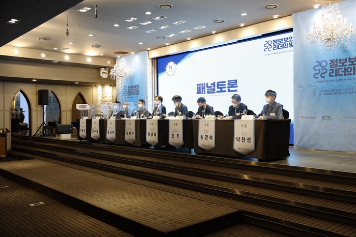 이어진 토론 시간에는 고려대학교 임종인 교수가 좌장으로 참여했으며, 패널로는 학계의 숭실대학교 정수환 교수와 고려대학교 한희 교수, 산업계 분야의 한국정보보호산업협회 이동범 회장과 디펜스(주) 박천성 기술이사, 정부·공공 관계자로서 과학기술정보통신부 홍진배 네트워크정책실장과 한국인터넷진흥원 최광희 정책본부장, 언론사에서는 중앙일보 김민석 대기자가 참석해 열띤 토의를 진행했다.