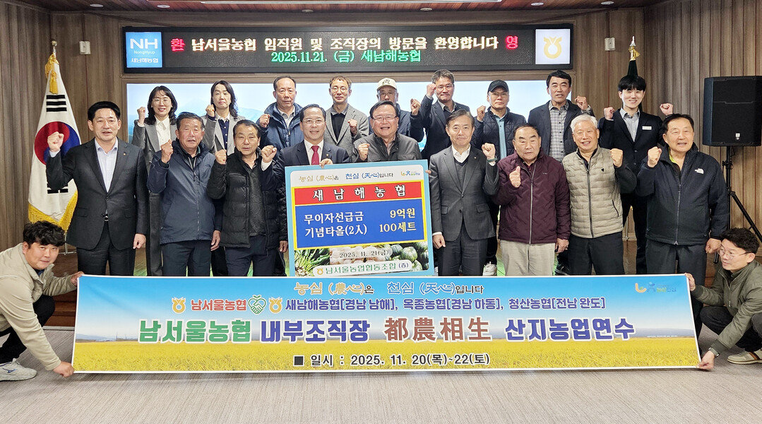 특히 남서울농협은 금번 방문을 통하여 산지농협의 경영안정과 농업 경쟁력 강화를 위하여 3곳의 농협에 무이자선급금 22억원을 지원하고, 농업인들이 농작업에 사용할 수 있도록 타올 300세트도 전달하며 실질적인 지원도 함께 추진하였다.