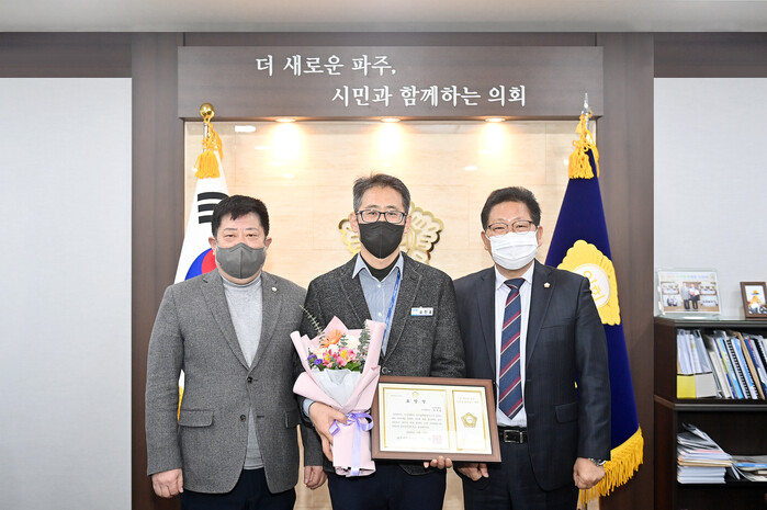 ▲ 이달의 칭찬공무원 오진호 팀장 선정. 파주시의회 제공 |