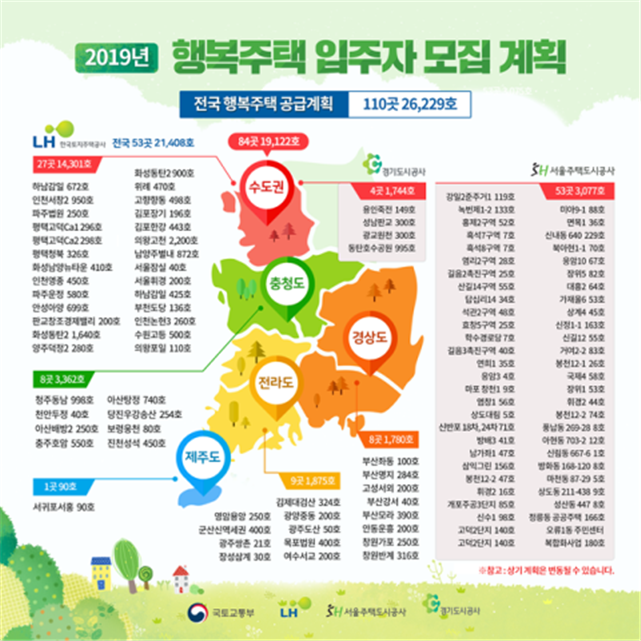 올해 모집하는 행복주택 110곳에는 ▲재건축·재개발 지구 매입형 ▲신혼 특화 단지 ▲일자리연계형 주택 ▲노후 공공청사 복합개발 등 다양한 유형의 행복주택이 포함된다.