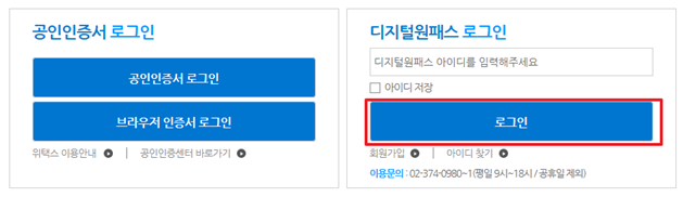 디지털원패스는 하나의 아이디로 다양한 정부의 온라인서비스를 이용할 수 있는 인증방식이다. 회원가입만 하면 공인인증서 없이 지문, 패턴, 문자, 비밀번호 등 다양한 수단을 통해 서비스를 이용할 수 있다.