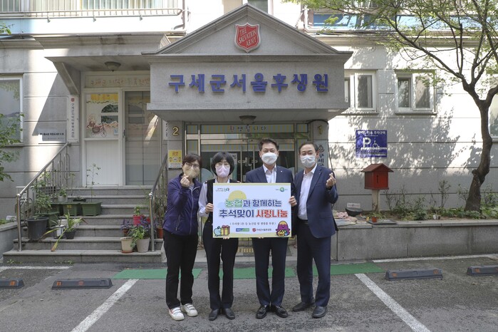 농협(회장 이성희) 상호금융은 한가위를 맞아 지난 6일 서울시 서대문구 소재 아동·청소년 돌봄시설인 구세군서울후생원(원장 최분란)을 찾아 우리쌀 1톤, 과일 등 명절 농산물을 전달하며 소외이웃들과 함께하는 ‘추석맞이 사랑나눔’을 실천했다.