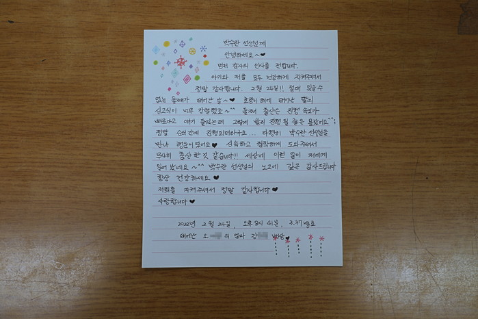 [로컬세계 부산=맹화찬 기자]부산중부소방서 제공부산중부소방서는 지난 5일 초량119안전센터 구급대원(박수란 소방관, 전광성 소방관, 임의준 소방관)의 발 빠른 현장 대처로 새 생명을 출산한 A씨가 직접 방문하여 감사의 편지와 인사를 전했다고 6일 밝혔다.