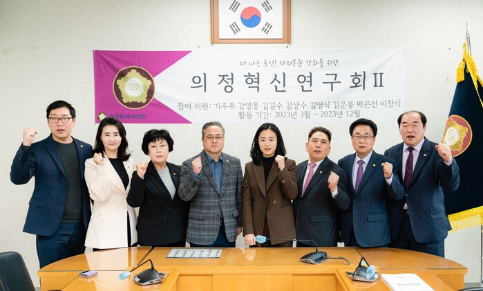 한편, 의원연구단체 '의정혁신연구회Ⅱ'는 기주옥(대표), 김길수(간사), 강영웅, 김상수, 김영식, 김운봉, 박은선, 이창식 의원(8명)으로 구성됐으며, 용인특례시의회의 위상을 높이기 위해 지방의회 권한 확보와 자치분권 강화 방안을 연구하고 있다.