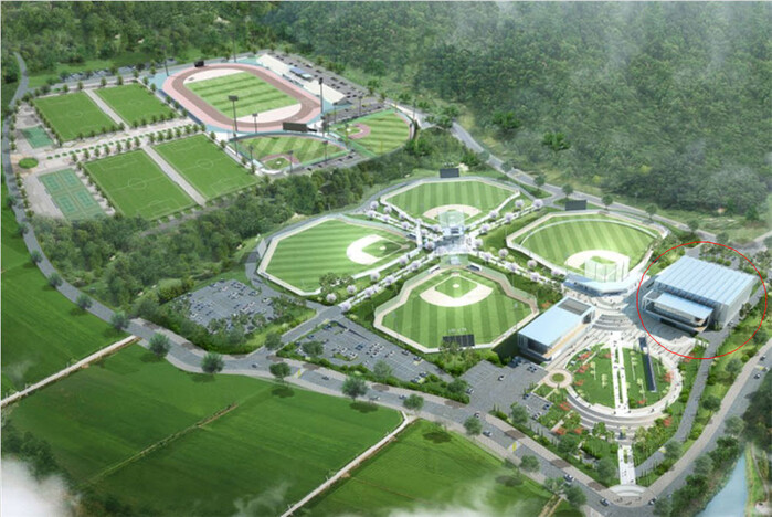 ‘야구체험관 및 실내야구연습장’은 연면적 6,859.78㎡, 지상 3층 규모로 조성되며, 총사업비 약 200억원이 투입되어 2025년 준공을 목표로 추진하고 있다.