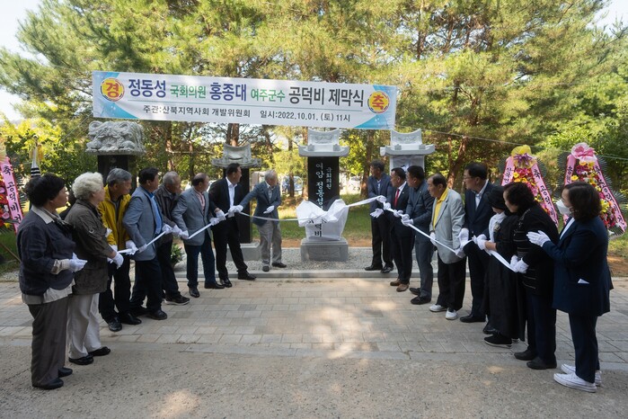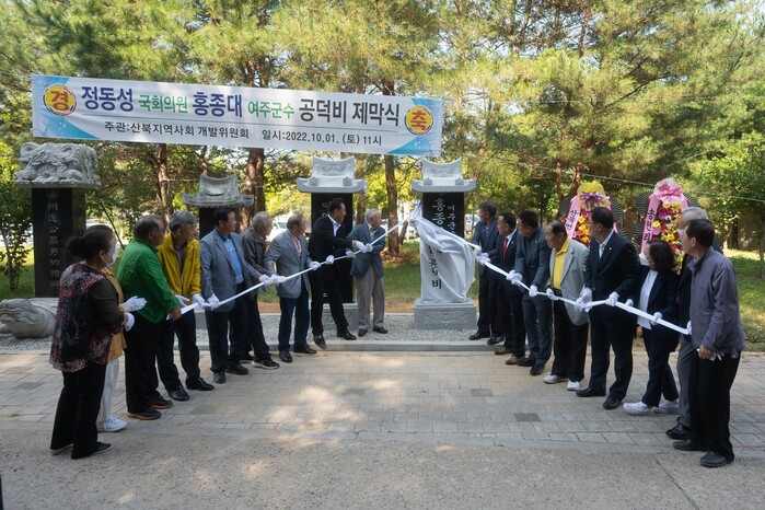 [로컬세계=김병민 기자] 경기 여주시는 홍종대 전 여주군수, 정동성 전 국회의원을 기리는 공덕비 제막식이 지난 1일 오전 11시 홍종대 전 여주군수, 이충우 여주시장, 정병관 여주시의회 의장, 박시선 여주시의회 의원, 이건화 산북지역사회개발위원장, 한지연 산북면장, 지역 기관단체장 등 50여명이 참석한 가운데 이현철 산북지역사회개발위원회 건립추진위원장의 사회로 산북면 체육공원에서 진행됐다고 4일 밝혔다.