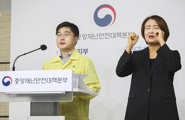 ▲윤태호 중앙사고수습본부 방역총괄반장이 중앙재난안전대책본부 정례브리핑을 하고 있다. (사진=보건복지부) |