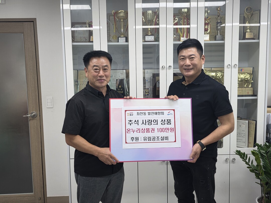 [로컬세계 = 맹화찬 기자] 부산 동구 좌천동은 유림공조설비에서 지난 26일 추석 명절을 맞이해 저소득 취약계층에게 온누리상품권(100만원 상당)을 기탁했다고 29일 밝혔다.