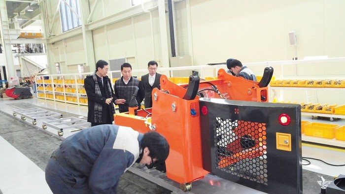 ▲김종환 대전조달청장(왼쪽 첫번째)이 25일 이텍산업(주)을 방문해 공장 관계자로부터 설명을 듣고 있다. |