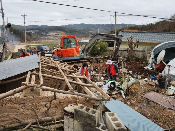 노후화로 방치된 재래식화장실 건물철거와 비닐하우스 2채 철거, 마당 전부를 가득 채운 각종 적치물, 쓰레기 수거등 지역사회보장협의체 위원 및 자원봉사자의 노동력으로는 턱없이 부족했는데, 포크레인 재능기부로 마당을 사용할 수 있고 깨끗한 환경이 되도록 큰 도움을 주었다.