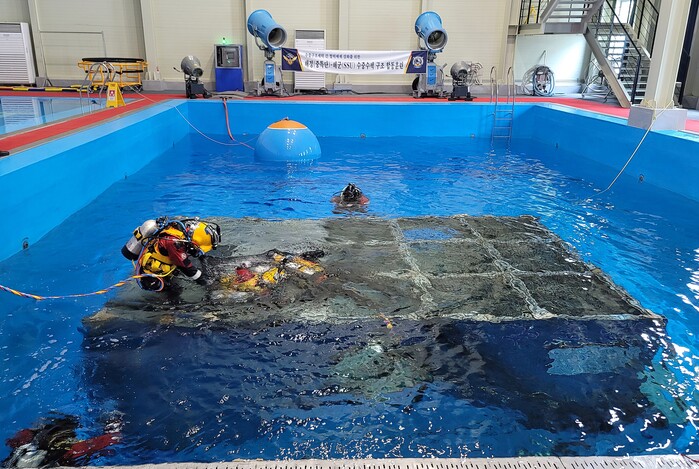 [로컬세계 부산=맹화찬 기자]중앙해양특수구조단은 3일, 중앙해양특수구조단 구조훈련장에서 대형 해양사고 발생에 대비해 사고대응 역량을 강화하고 수중 수색구조 협업체계 구축을 위해 해군 해난구조전대(Sea Salvage & Rescue Unit, SSU)와 합동 SSDS(Surface Supplied Diving System, 표면 공급식 잠수 시스템) 잠수훈련을 실시했다.
