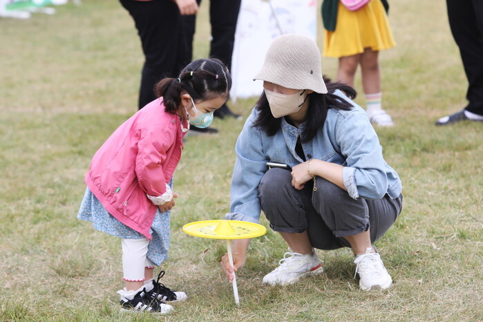 ▲ 다정한 모녀가 버나돌리기를 체험하며 즐거운 시간을 보내고 있다. |