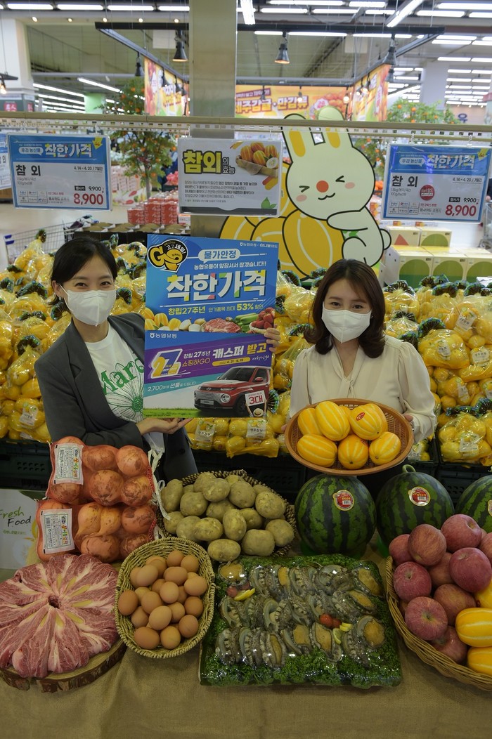 ▲21일(목) 농협유통 하나로마트는 통합 후 첫 창립 27주년을 맞이하여 25일간 주요 농축수산물 등을 최대 53% 할인된 파격적인 가격으로 판매한다. 농협유통제공 |