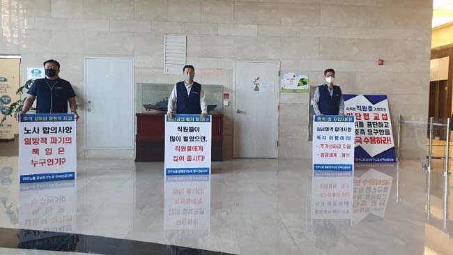 또한 지속적으로 발생되고 있는 직장내 괴롭힘에 대해 사측은 철저한 조사와 재발 방지대책을 세우고, 엄정한 징계 절차 및 투명하고 공정한 보직자 인사관리를 해야 하며, 인사권 남용으로 발생하는 보직자들의 문제점에 대한 책임은 전적으로 이형철 회장이 져야 한다고 지적했다.