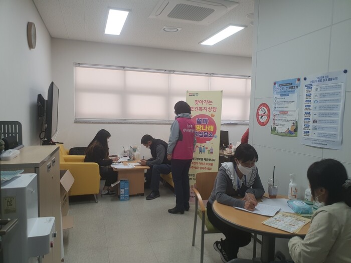 | ▲부산 기장군이 지난 4~5일 걸쳐 고촌안평마을복지회관에서 '찾아가는 희망나래 복지상담소'를 운영 중인 장면. 기장군 제공 |