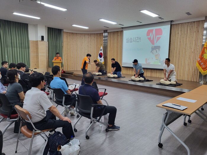 간담회 주요내용은 ▲최근 숙박시설 화재사례(화재영상 활용) 소개 ▲주·야간 소방시설 등 상시 정상 유지관리(폐쇄·차단 금지) 철저 ▲화재시 투숙객 정보 신속 전달 및 객실 마스터키 통합 관리 ▲화재 초기대응방법 교육 ▲심폐소생술(CPR) 순으로 진행했다.