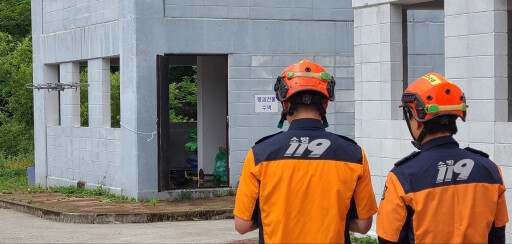 ▲붕괴건물 내부수색분야에서 한 참가팀이 기량을 펼치고 있다. 경남도 제공 |