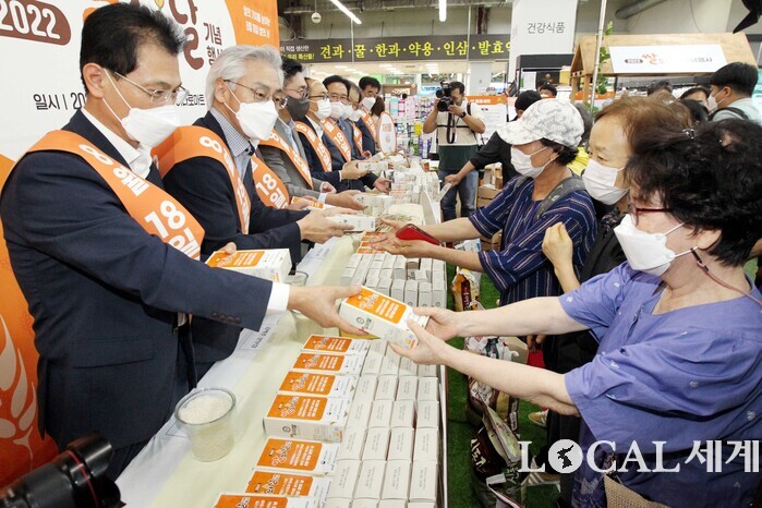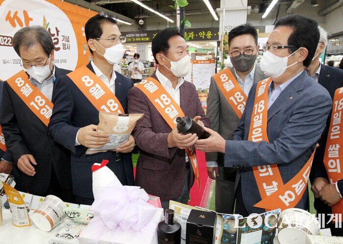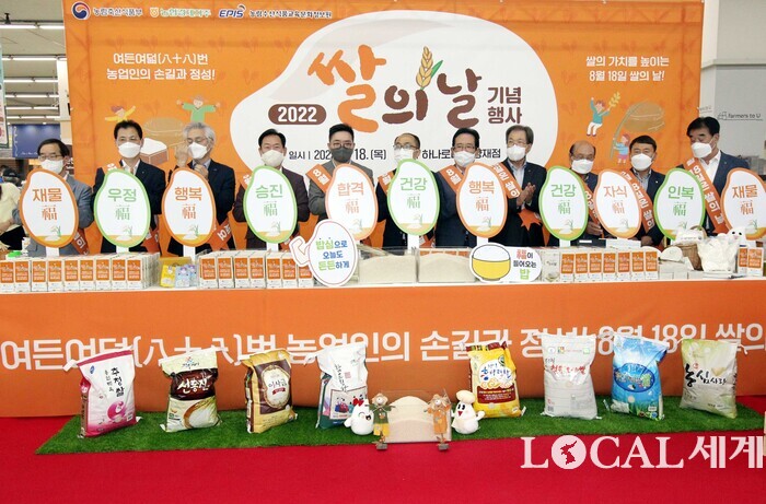 농림축산식품부(장관 정황근)와 농협(회장 이성희) 경제지주는 18일 하나로클럽 양재점에서 쌀의 날(8.18)을 기념하기 위해 행사를 진행했다고 밝혔다.