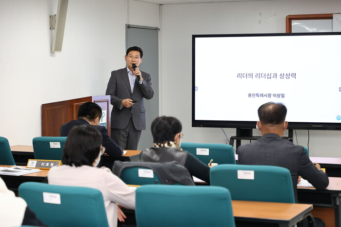 [로컬세계=김병민 기자] 이상일 용인특례시장이 지난 25일 국민대 정치대학원에 이어 27일 용인대학교 경영대학원 최고경영자과정에서 ‘리더의 리더십과 상상력’이란 주제로 특강을 했다.