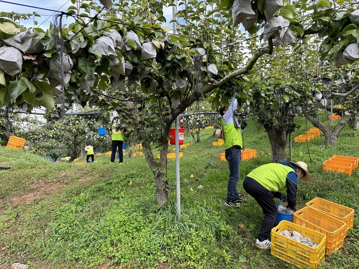 이날 축산기획부 임직원들은 수확기 인력 수급에 어려움을 겪는 농가를 위해 배 수확작업과 인근마을 환경정리 등을 실시하며 구슬땀을 흘렸다.