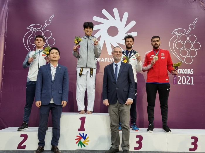[로컬세계 김병민 기자]경기 김포시청 직장운동경기부 태권도선수단의 이학성 선수가 제24회 하계데플림픽(청각장애인올림픽대회)에서 금메달을 획득해 데플림픽 3연패를 달성했다.