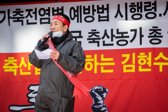 이날 축산농민들은 연대발언을 통해 “농가 없이 방역만 남는 가전법 개정은 누구를 위한 제도란 말인가? 농가를 살리려던 방역이 언제부터 농가를 벼랑끝으로 몰아넣는 사형선고가 되었는가?”라고 반문하고, “정부는 팔도강산 제 맘껏 뛰어다니는 멧돼지는 어쩌지도 못하면서 정부 말만 믿고 성실하게 가축 농사짓는 축산농민만 때려잡고 있다”고 비판했다.