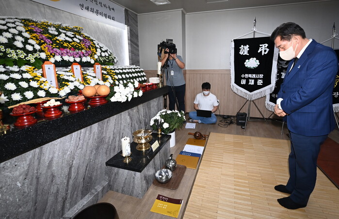 수원시는 지난해 7월 수원시 기독교연합회·수원시 불교연합회·천주교 수원교구·원불교 경인교구와 ‘공영장례를 위한 업무협약’을 체결하고, 무연고 사망자, 연고자가 시신 인수를 거부·기피해 장례를 치를 수 없는 사망자의 장례를 지원하고 있다. 고인의 종교가 확인되면 해당 종교에서 추모의식을 주관하고, 종교를 알 수 없는 사망자는 분기별 담당 종교가 추모의식을 한다.