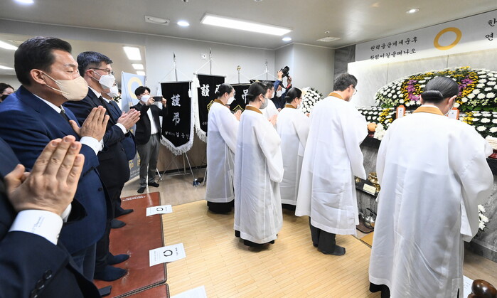 이날 오후 1시 55분 빈소를 찾은 이재준 시장은 원불교 경인교구가 거행한 추모 의식에 30여 분 동안 참여하며 세 모녀의 넋을 위로했다.