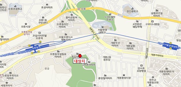 ▲위치도, 오류동역(1호선)에서 약 600m(도보 10분 이내) 이격. |