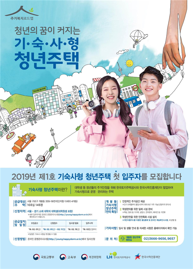 이번에 최초로 공급되는 기숙사형 청년주택은 대학생 맞춤형 주거공간 조성을 위해 국토교통부, 교육부, 한국토지주택공사 및 한국사학진흥재단 등 4개 기관간 협력을 통해 추진됐다.