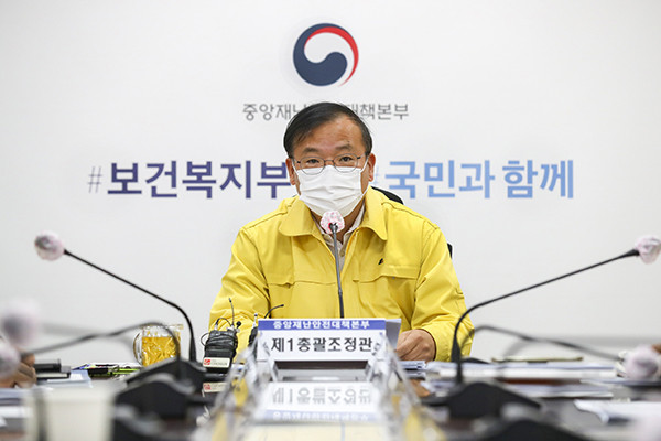 ▲강도태 1총괄조정관(보건복지부 2차관)이 중앙재난안전대책본부 회의를 주재하며 발언하고 있다. (사진=보건복지부) |