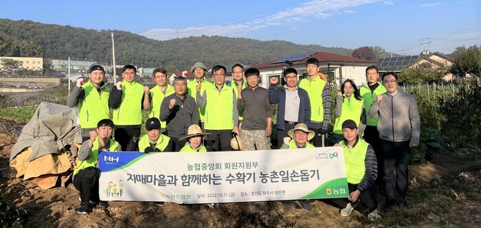 회원지원부 직원 봉사단 20여 명은 자매마을인 경기 파주시 광탄면 양지마을을 방문해 고추대 뽑기, 김장배추 묶기 및 환경정비작업을 실시했고, 자매마을 발전을 위해 직원들이 자율적으로 조성한 기금 100만원을 전달했다.