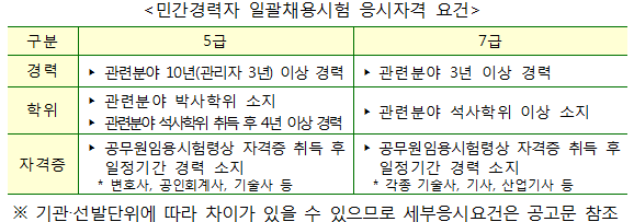 자세한 문의는 인사혁신처 인재채용국 경력채용과 (044-201-8374 )로 확인할 수 있다.