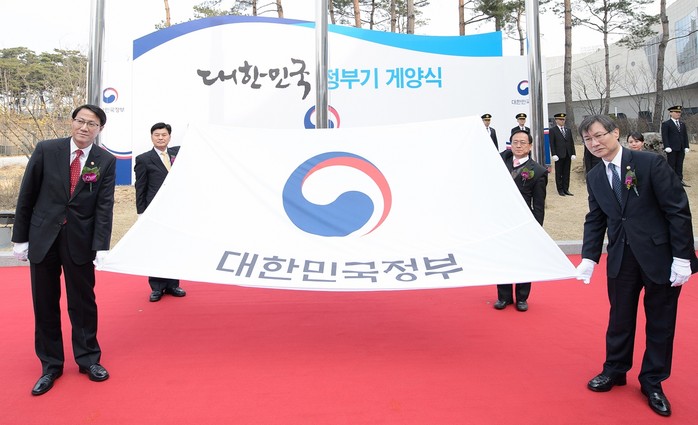 정부세종청사 총리실 게양대에서 열린 새 정부기 게양식에는 이춘희 세종시장과 김성렬 행자부차관, 시민대표 등이 참석했다.