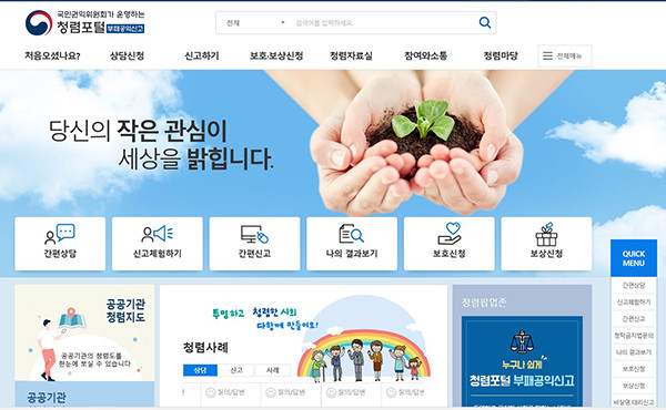 ▲청렴포털 부패공익신고’(http://www.clean.go.kr) 누리집. |
