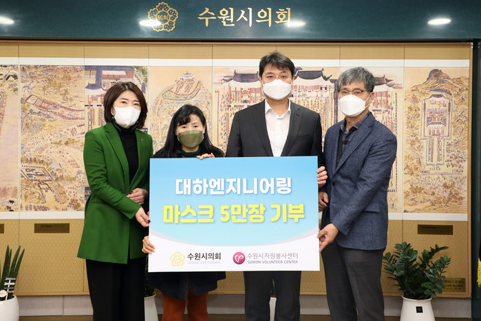 [로컬세계 김병민 기자]경기 수원시의회(의장 조석환)는 화성시 정남면에 위치한 대하엔지니어링으로부터 어려운 이웃을 돕기 위한 마스크 5만장(25박스)을 기탁받았다고 10일 밝혔다.