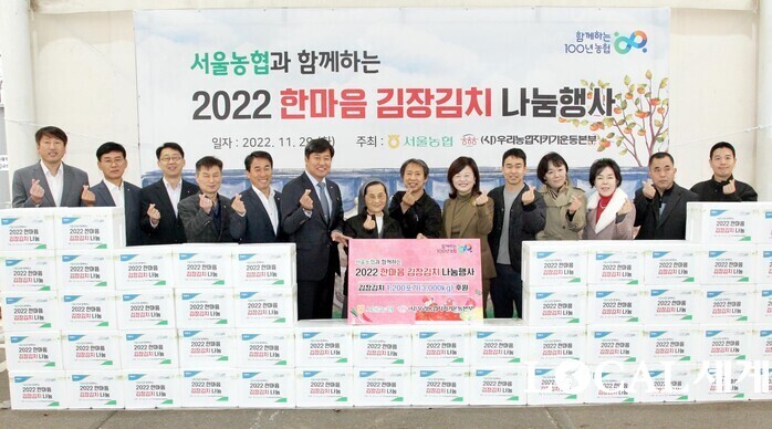 농협중앙회 서울지역본부(본부장 황준구)와 (사)우리농업지키기운동본부 서울지역본부(본부장 한성식)는 '2022 서울농협 한마음 김장김치 나눔행사'를 개최한다고 29일 밝혔다.