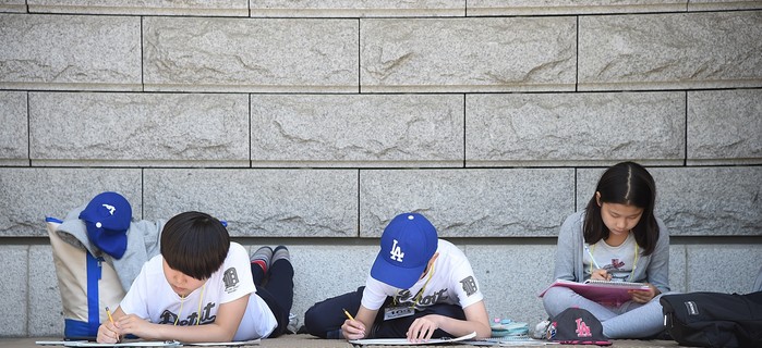 ▲지난 5일 어린이날을 맞아 대전시 화폐박물관에서 열린 ‘제1회 어린이 희망 글짓기 대회’에서 어린이들이 글짓기를 하고 있다. |