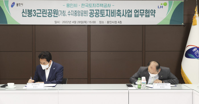용인시는 28일 한국토지주택공사(LH)와 공공토지 비축사업 업무협약을 체결, 시유지를 제외한 51만2959㎡ 규모의 공원 부지에 대한 보상을 추진한다.