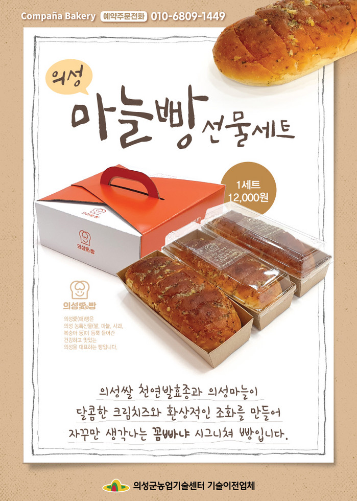 현재 꼼빠냐베이커리, 농협베이커리, 카페페르떼, 더하기농업회사법인에서 마늘빵, 사과빵, 치즈케이크, 미니파운드케이크 등 다양한 제품의 의성愛(애)빵을 단품 및 선물세트로 만나볼 수 있다.