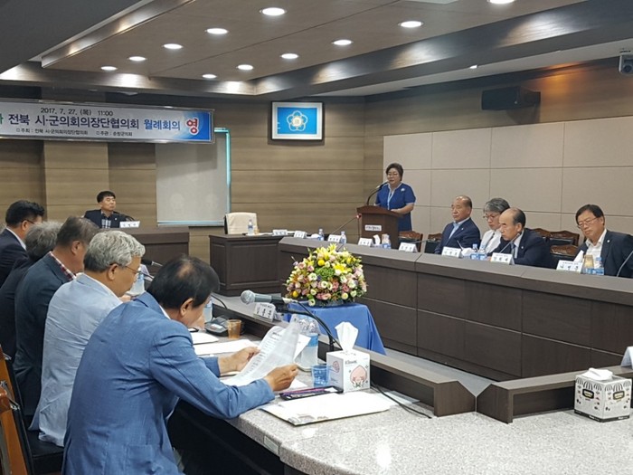 [로컬세계 양해수 기자]전북 군산시의회 박정희 의장은 27일 순창군의회에서 열린 제229차 전북시군의회의장단협의회 월례회에서 군산조선소 재가동을 위해 도민 여러분의 힘을 모아달라고 간곡히 호소했다.